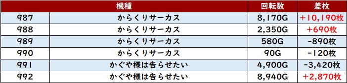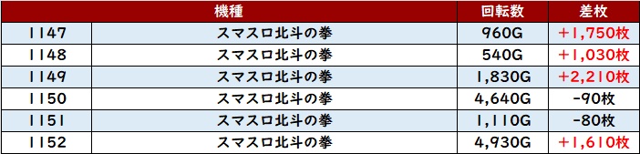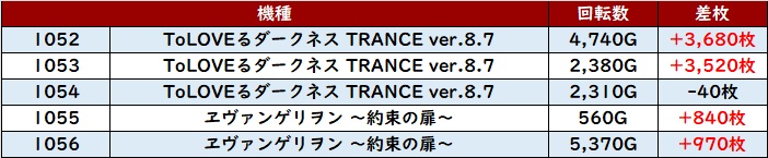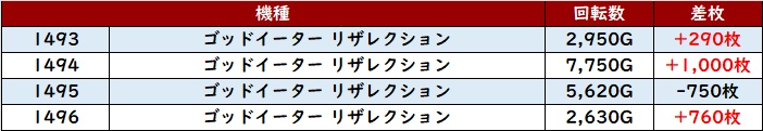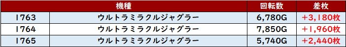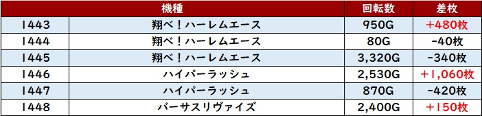その中でも差枚数+10,500枚と頭一つ抜けた出玉感まで見られ、メイン機種にも劣らない勢いを見せていた。
