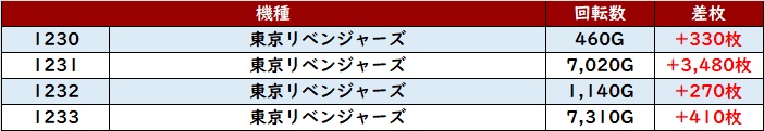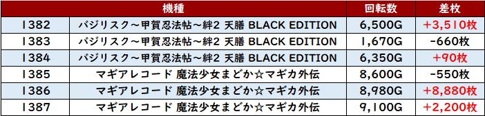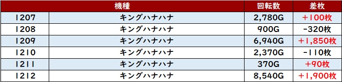 まずは「東京喰種 1809~1814」6台中5台がプラス差枚と高い勝率に!