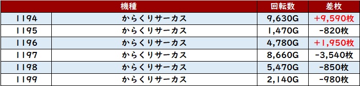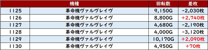 回転数8,100G超えや差枚数+5,100枚超えと素晴らしい数値のオンパレードとなっており、多くのユーザーから注目される箇所となっていた。