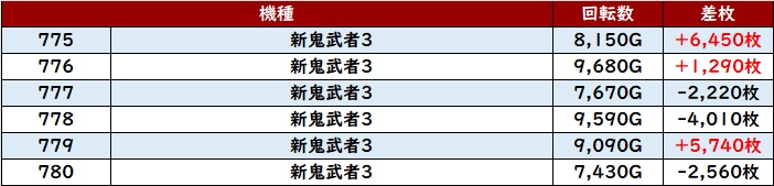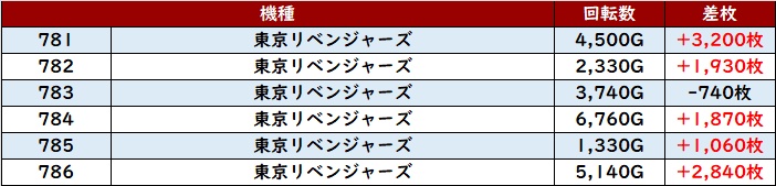 6台中4台が差枚数+3,700枚超え、中には差枚数+13,210枚と誰もが羨むような出玉感を記録する台も現れていた!