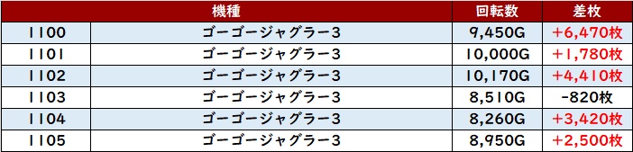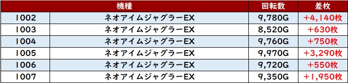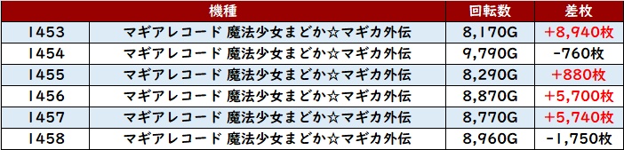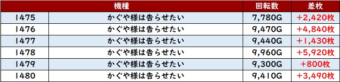 更に「かぐや様 1475~1480」も全台プラス差枚と素晴らしい結果に!