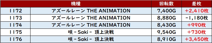 1ボックス目は「牙狼12」が平均差玉数+11,770玉、「牙狼神速神撃」が平均差玉数+15,380玉と2機種揃って圧巻の出玉感を記録!