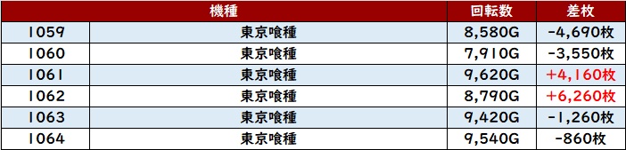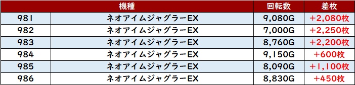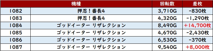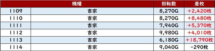 差枚数+18,790枚とコンプリート機能に到達したと思われる台を筆頭に、殆どの台がインパクトのある出玉感を叩き出した!