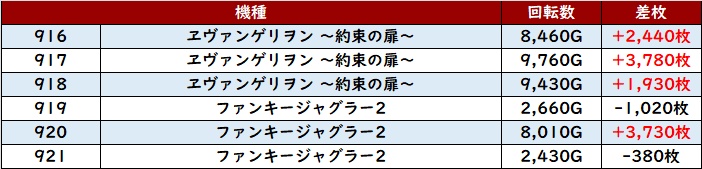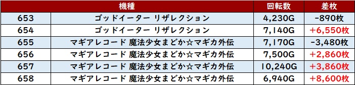 中には差枚数+9,050枚と大台まであと一息という台まで見られ、ピックアップ箇所の中でも特に注目を集めていた。