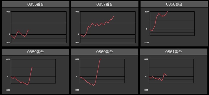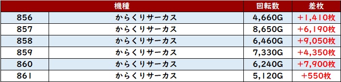 他にも「からくりサーカス 856~861」が全台プラス差枚と絶好調!