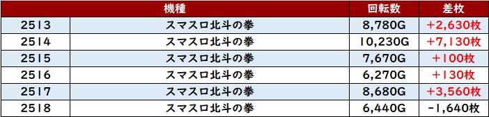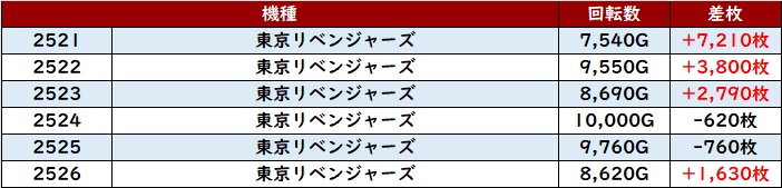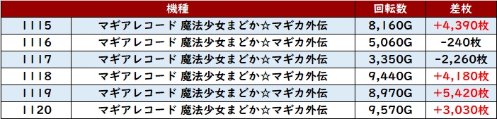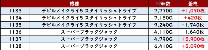 どの箇所も稼働の高さが凄まじく、その稼働も相まって差枚数+5,000枚超えが多数見られるなど驚きの出玉感が続出していた。