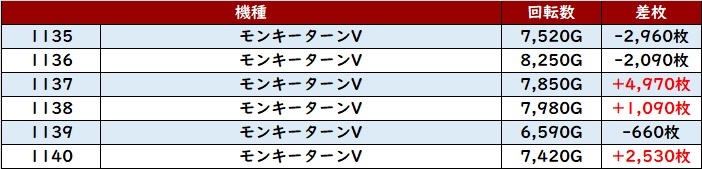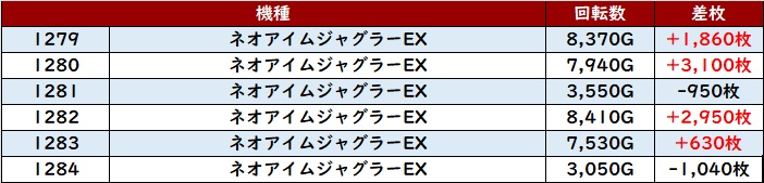 ・1台あたりの平均差玉数:+9,280玉