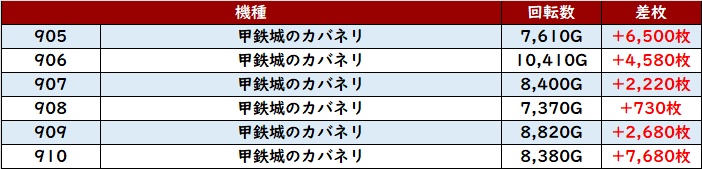 続いて「カバネリ 905~910」も全台プラス差枚と絶好調!