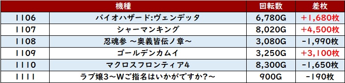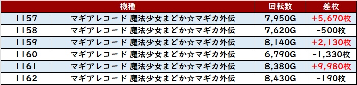 ・スロット集計機種計72台総差枚数:+156,900枚