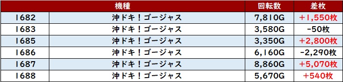 殆どが回転数9,900G超え且つ差枚数+2,300枚超えと素晴らしい結果を残し、スロットコーナーの中で一際大きな熱気を放っていた。