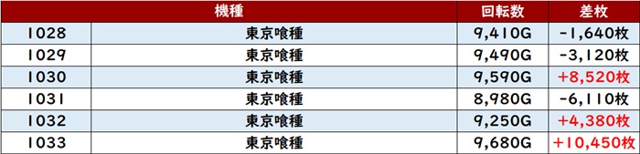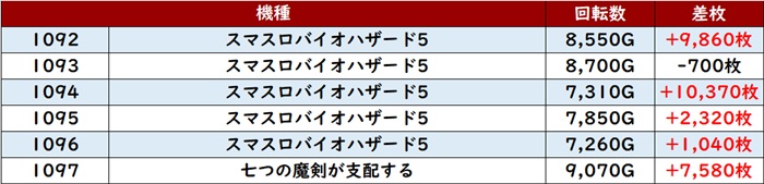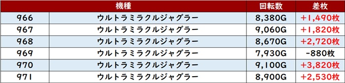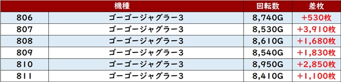 更に全台大幅プラス差枚に加え、中には差枚数+8,470枚という出玉感も見受けられ、注目度の高い箇所の1つとなった!
