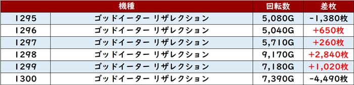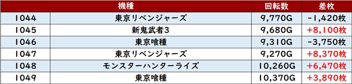 全台回転数9,300G超えの高稼働に加えて、半数が差枚数+6,400枚超えの大幅プラス差枚を叩き出した!