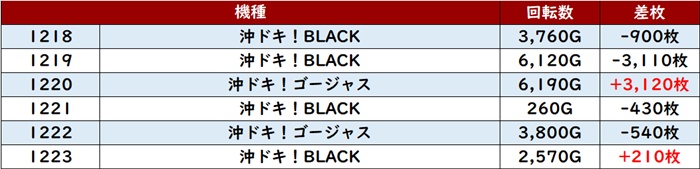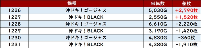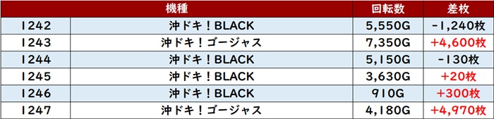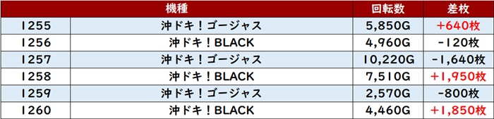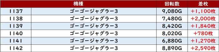 続いて「ゴージャグ3 1137~1142」が全台プラス差枚を記録!