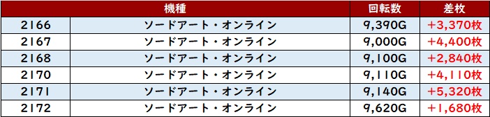 更に「SAO 2166~2172」全台大幅プラスと絶好調!