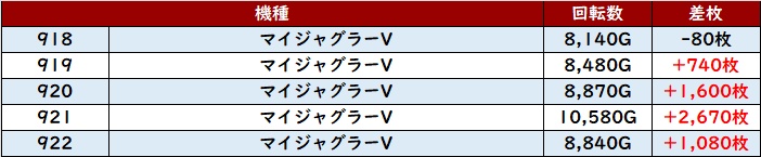 全台回転数8,300G超えの高稼働を保ちながら、差枚数+8,900枚をはじめとして殆どが大幅プラス差枚を記録しており、熱狂ぶりがこちらにも伝わってきた!