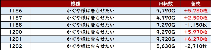 差枚数+8,940枚と大台までもう一歩という台まで現れており、状況の良さがはっきりと伝わってきた。