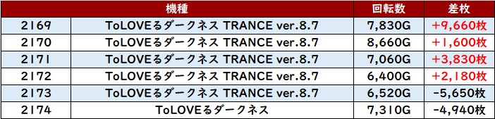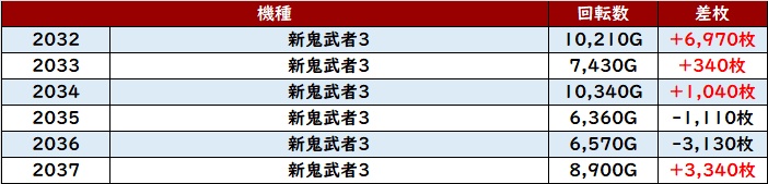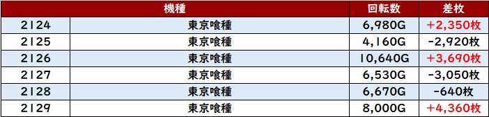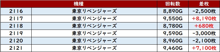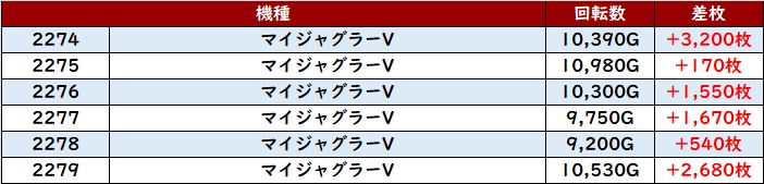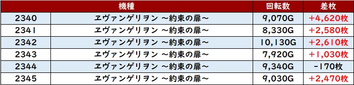 こちらも優秀な稼働も相まって6台中5台が大幅プラス差枚を記録し、好調さを周囲にアピールしていた。