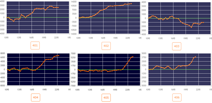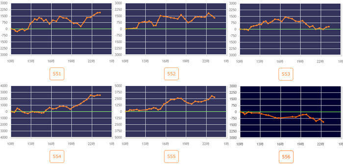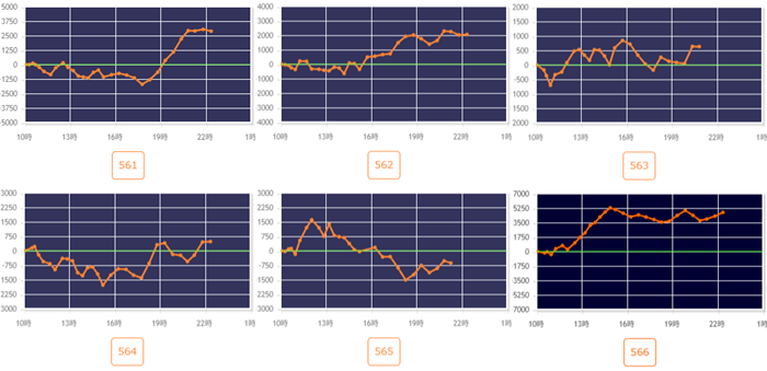 差枚数+12,260枚を中心に綺麗な右肩上がりで大きく出玉感を伸ばす台が大半を占め、盛り上がりを牽引する役割を果たした!