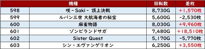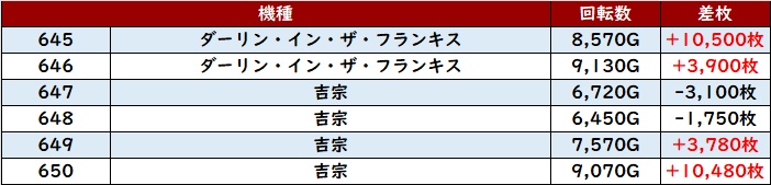 6台中4台が差枚数+6,200枚超えを記録していたが、稼働の高さが偶然の産物などではないことを証明していた。