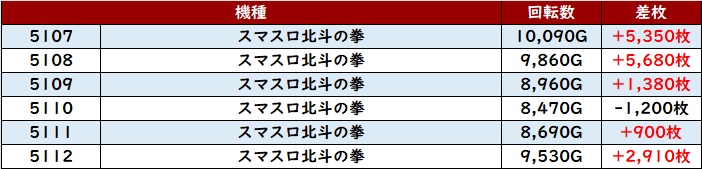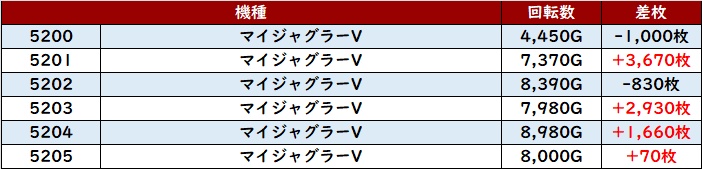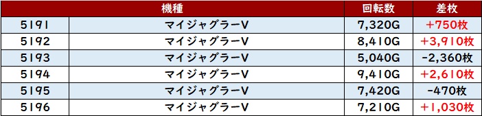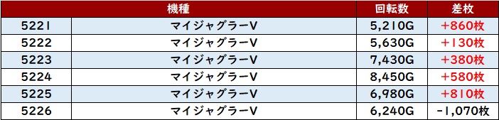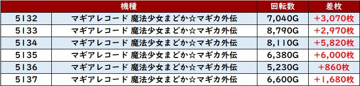 まずは「マギレコ 5132~5137」が全台プラス差枚と熱気溢れる一角に!