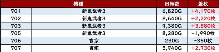 更に「新鬼武者3~スマスロ吉宗 701~707」が盛況!