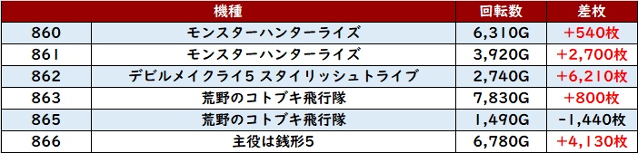 差枚数+4,300枚超えが2台も見られ、スロットコーナー内の出玉感を底上げする活躍を見せた!