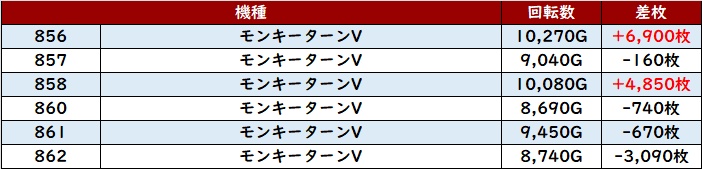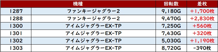 差枚数+12,720枚を筆頭に殆どが大幅プラス差枚を叩き出し、盛り上がりを演出した!