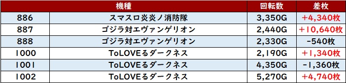 中には差枚数+6,580枚と驚異的な数値を記録する台もあり、行き交うユーザー達から視線を奪っていた。