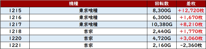 まずは「東京喰種~スマスロ吉宗 1215~1221」が大きな出玉感で一際目を惹く存在に!