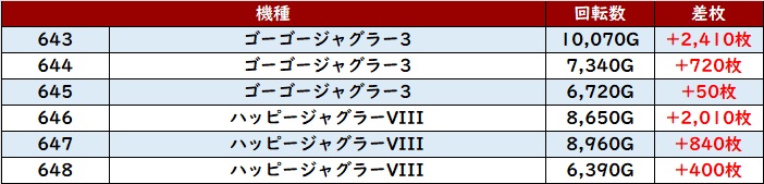 こちらからも差枚数+14,660枚と皆が羨む出玉感が見られ、存在感を放っていた。
