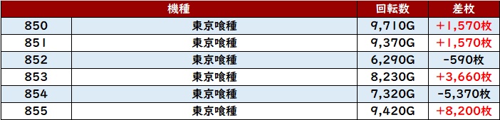 更に「東京喰種」が平均差玉数+6,300玉と店内の盛り上がりを後押しした。