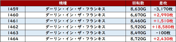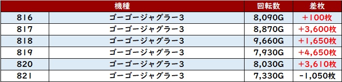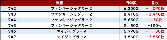 こちらは差枚数+4,750枚を筆頭に全台大幅プラス差枚を記録し、スロットコーナーの盛り上がりを加速させる存在となった。