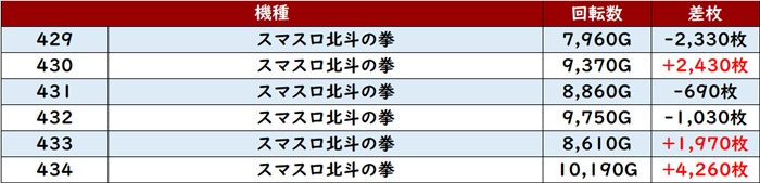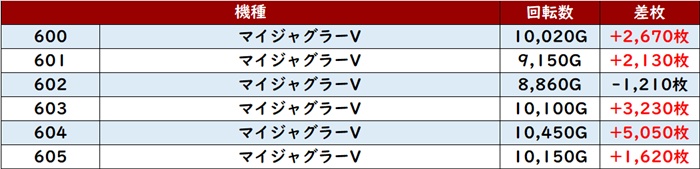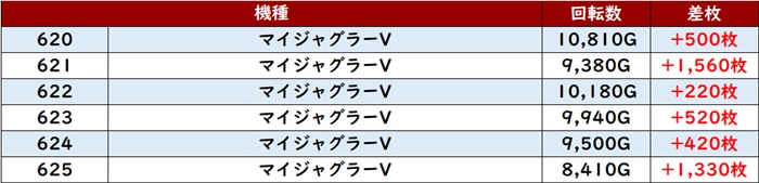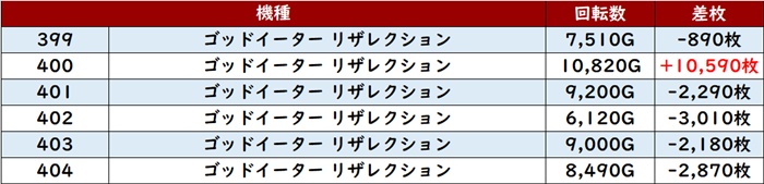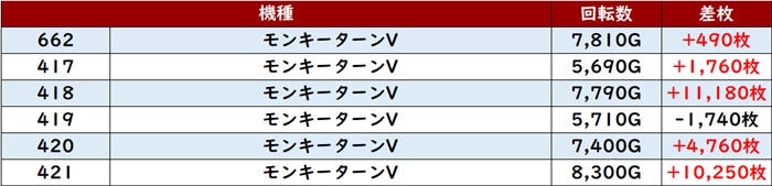 こちらもなんと差枚数+1万枚超えが2台現れるなど盛り上がりの一翼を担っていた。