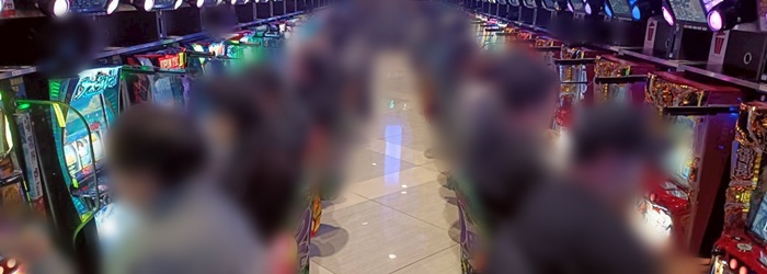 朝イチは「スマスロ北斗」「モンキー5」「新鬼武者3」などの人気機種を始め、BT機、「バラエティ」まで満台となった。