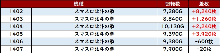 まずは「スマスロ北斗 1402~1407、1434~1439」が絶好調!