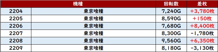 計12台全台回転数7,200G超えの高稼働に加え、殆どが大幅プラス差枚と優秀な結果を残し、盛り上がりに貢献した!