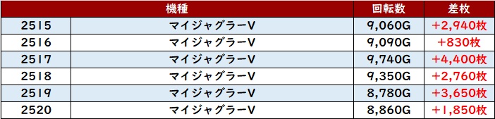 更に「マイジャグ5 2515~2520」が好調さをアピール!