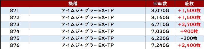 ・1台あたりの平均差枚数:+2,880枚