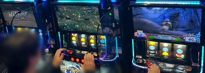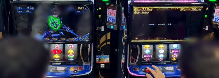 朝イチは「スマスロ北斗」「新鬼武者3」東京リベンジャーズ」「東京喰種」「モンキー5」「マギレコ」「ハッピー3」「ミスター」「ガールズSS」などが埋まった。