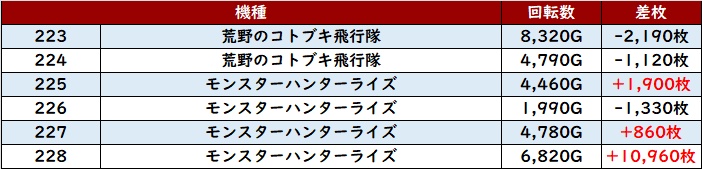 また「コトブキ~モンハンライズ 223~228」が機種跨ぎで絶好調!