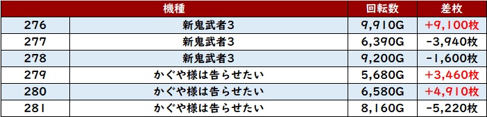 朝イチは「スマスロ北斗」「モンキー5」「かぐや様」「ヴヴヴ」「東京喰種」「新鬼武者3」「東京リベンジャーズ」「いざ番」等から稼働していった。