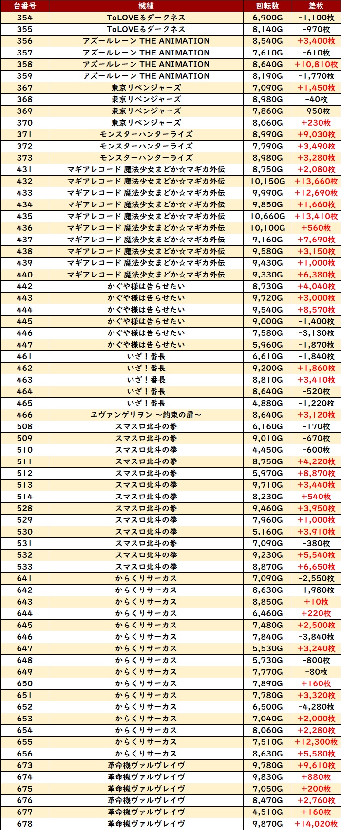 ピックアップ台の殆どが回転数7,000G超えとぶん回っており、差枚数+14,020枚などの目を見張る出玉感を多数確認した!