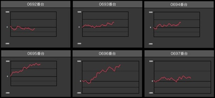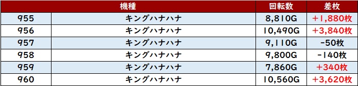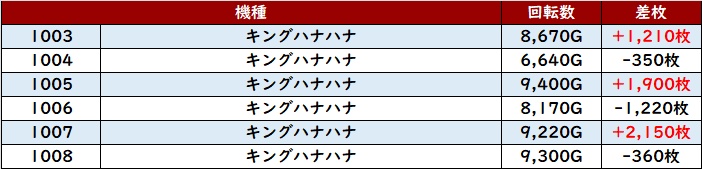 惜しくもマイナス差枚になってしまった台も含めて、全台回転数8,200G超えと熱心に打ち込まれていた!