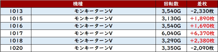 更に「モンキー5 1013~1020」が良好な結果に!