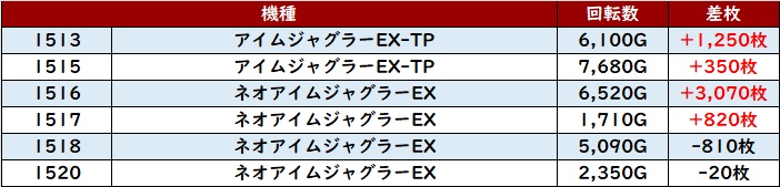 ・1台あたりの平均差枚数:+1,390枚