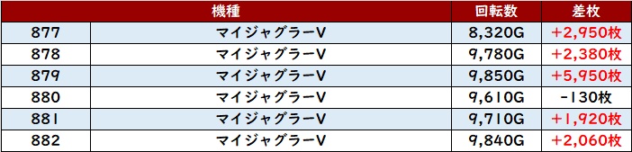 更に「マイジャグ5 877~882、889~894」が2箇所にわたって大盛況!