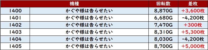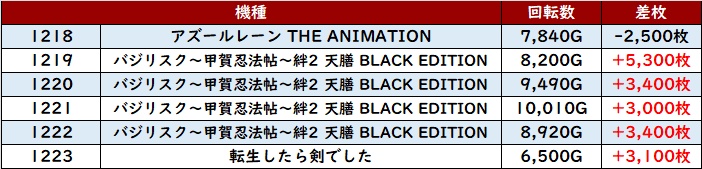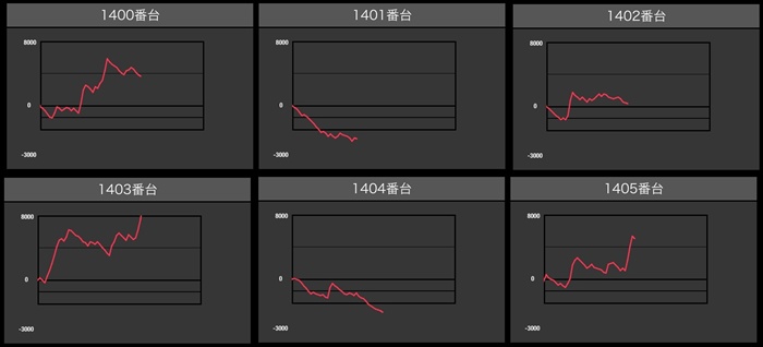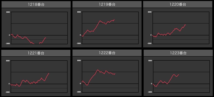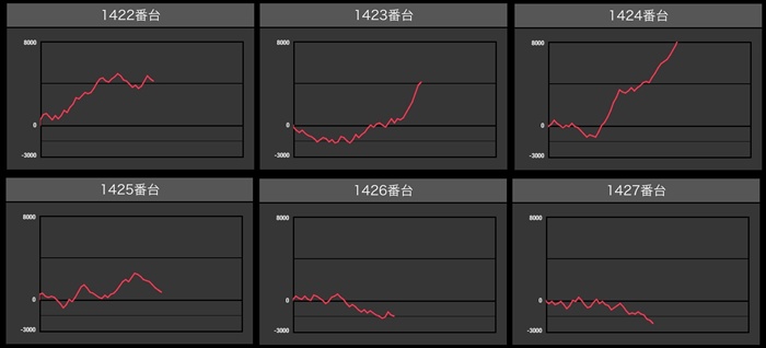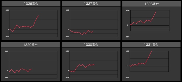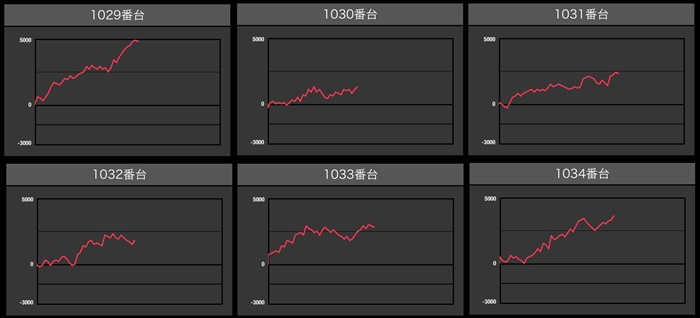 6台中5台がプラス差枚に加えて差枚数+1万枚の台まで見られ、ポテンシャルの高さを存分に感じられた。
