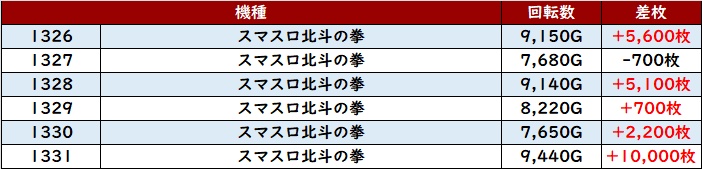 更に「スマスロ北斗 1326~1331」も終日大盛況に!