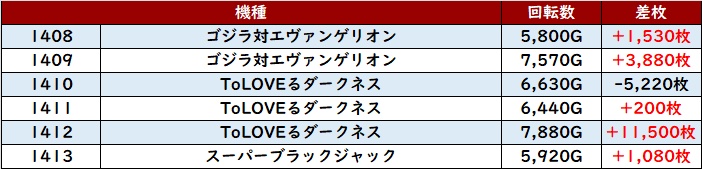 更に「ゴジエヴァ~スーパーブラックジャック 1408~1413」も機種跨ぎで絶好調!