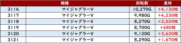 更に「マイジャグ5 3116~3121、3170~3175」2箇所にわたって大盛況!